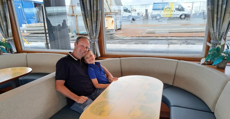 Terwijl de kinderen bezig zijn, kun je zelf ontspannen aan boord met enorme ruiten. Er is koffie, thee en iets lekkers te krijgen.